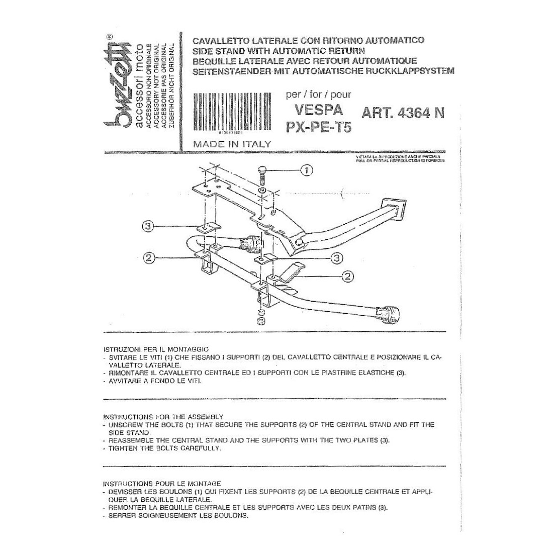 (R.14901) Vendo zampa di sostegno laterale nuova per Piaggio Vespa PX - PE - T5 di colore nero , il prezzo si intende per singolo pezzo , per istruzioni di montaggio vedere foto , disponibili più modelli :
