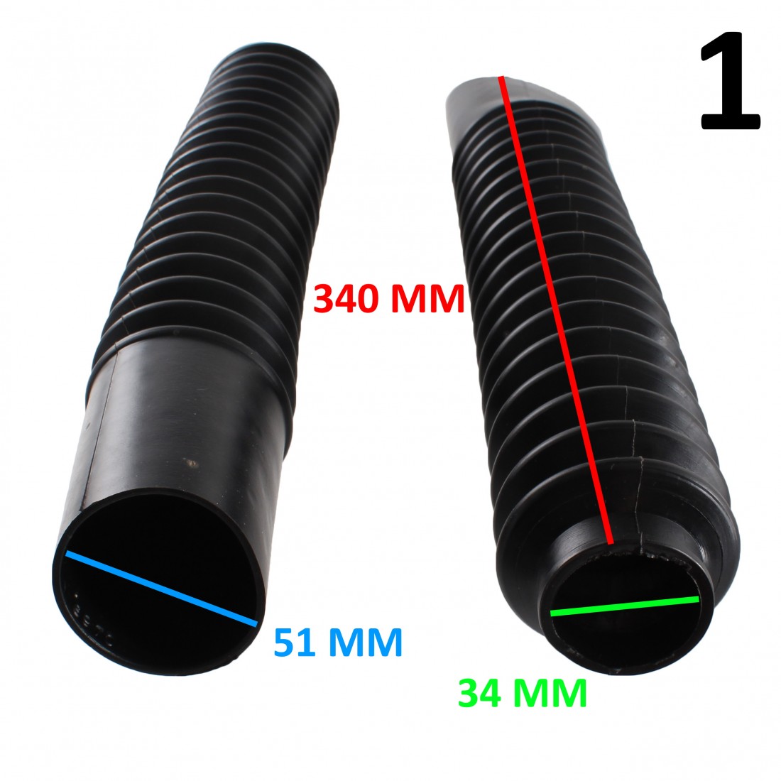 (R.14980) Vendo coppia soffietti in gomma forcella nuovi per moto varie epoca marca Ariete con codice 6970 con lunghezza 340 mm e diametri approssimativi fori 34 mm e 51 mm , il prezzo si intende per la singola coppia , per misure vedere foto , disponibili più modelli :