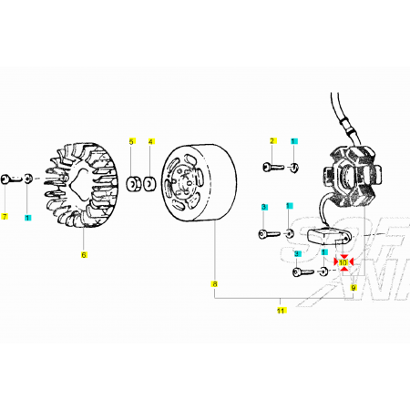 (R.20547) Vendo pick up statore usato in buone condizioni con codice Piaggio 498865 per Scooter Piaggio 50 cc Zip , Sfera , Quartz , Liberty , Nrg , Ntt , Free , Zip , Vespa , Typhoon dal 1991 al 2005 , scooter Derby 50 cc Atlantis 02 dal 2002 al 2005 , scooter Gilera 50 cc Dna , Runner , Stalker , Typhoon dal 1994 al 2005 , per applicazioni e spaccato vedere foto