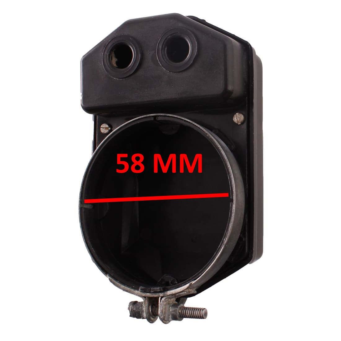 (R.20555) Vendo cassa filtro aria carburatore usata per ciclomotori Garelli marchiata DGm 10082 S , marchiato con logo Garelli con spessore 35 mm e con diametro interno imbocco 58 mm , per misure vedere foto