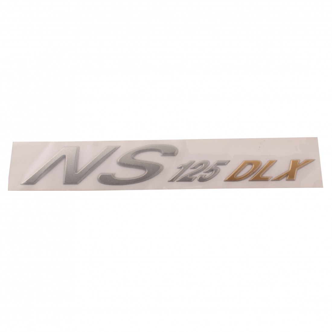 (R.21225) Vendo adesivo resinato nuovo di colore argento e oro con scritta "NS 125DLX" per Daelim NS 125 DLX