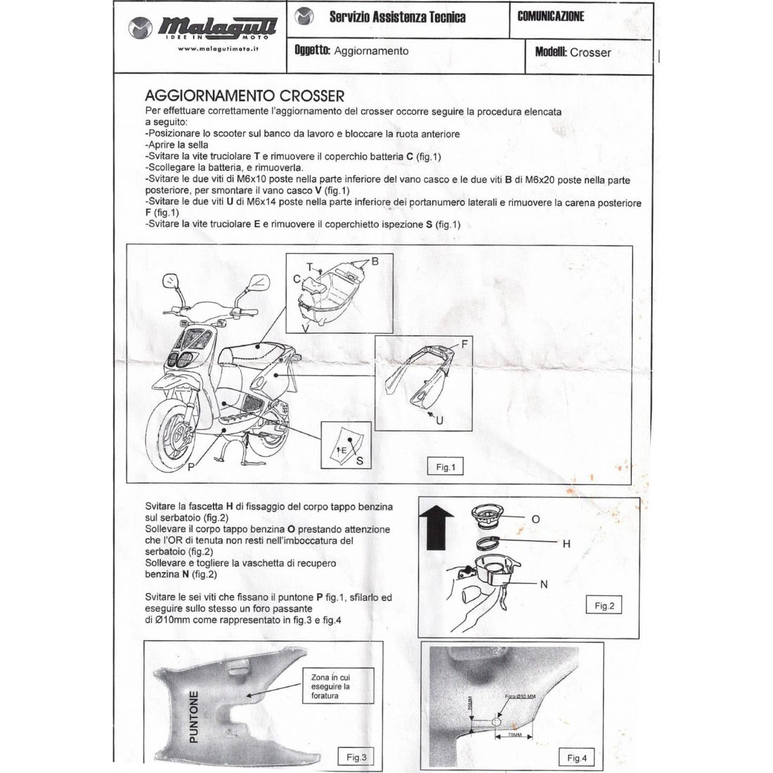 (R.21758) Vendo kit modifica nuovo del tappo carburante incompleto senza il codino per Malaguti Crosser , per istruzioni vedere foto