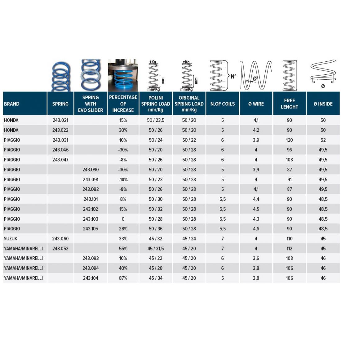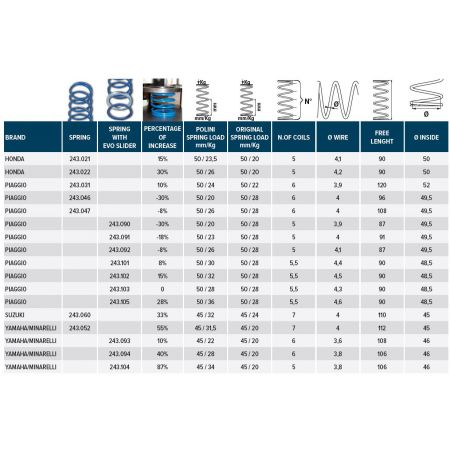 (R.22341) Vendo molla di contrasto Polini " Evo Slider " nuova con codice 243.092 per Aprilia Gulliver - Mojito - Rally - Scarabeo - SR , Atala Carosello , Benelli 491 - K2 - Naked , Beta ARK - Eikon , Derbi GP1 , Gilera DNA - Easy Moving - Runner - Stalker - Storm - Typhoon , Italjet Dragster - Yankee - Scoop , KTM K , Malaguti Centro - Ciak - F12 - F15 , MBK Active - Booster - Nitro , Motron Sting - Syncro - Thunder , Peugeot Jet Force - Ludix , Piaggio Diesis - Extrem - Fly - Free - Liberty - MC2 - NRG - Quartz - Sfera - Zip - Vespa 50 ET2 - Vespa LX , Rieju RS - NKD , Yamaha Aerox - BW'S - Jog - Neo's - Slider - Spy - Why , per misure ed applicazioni vedere foto