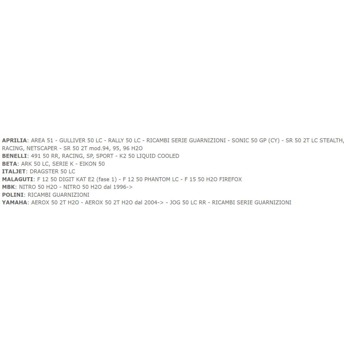 (R.22377) Vendo serie di guarnizioni da 47,6 evolution del cilindro nuova con codice Polini 209.0412 per Aprilia AREA 51 - GULLIVER - RALLY - SONIC 50 GP - SR 50 STEALTH / RACING / NETSCAPER - SR 50 , Benelli 491 RR / RACING / SP / SPORT - K2 , Beta ARK - EIKON Italjet DRAGSTER , Malaguti F12 PHANTOM LC - F15 FIREFOX , MBK NITRO , Yamaha AEROX - JOG 50 RR , per applicazioni vedere foto