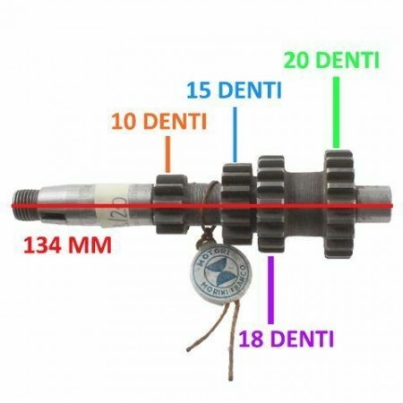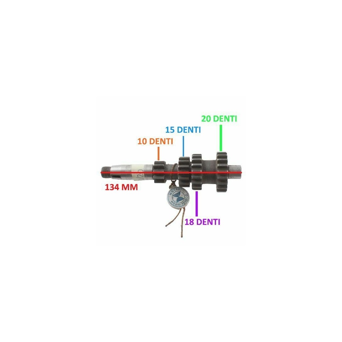 (R.11022) Vendo albero primario del cambio nuovo per motori Franco Morini  4 MP  con codice Franco Morini 10.1006 da 10 - 15 - 18 - 20 denti , per misure vedere foto