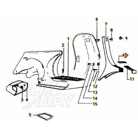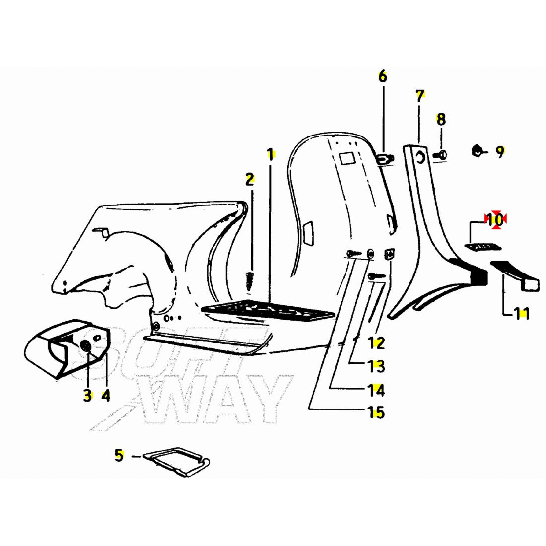 (R.22392) Vendo targhetta in plastica della calandra anteriore con scritta " PIAGGIO " nuova per Piaggio Vespa T5 125 dal 1985 - Vespa PX Arcobaleno 125 , 150 e 200 dal 1983 , simile a codice Piaggio 232895 , per applicazioni e spaccato vedere foto