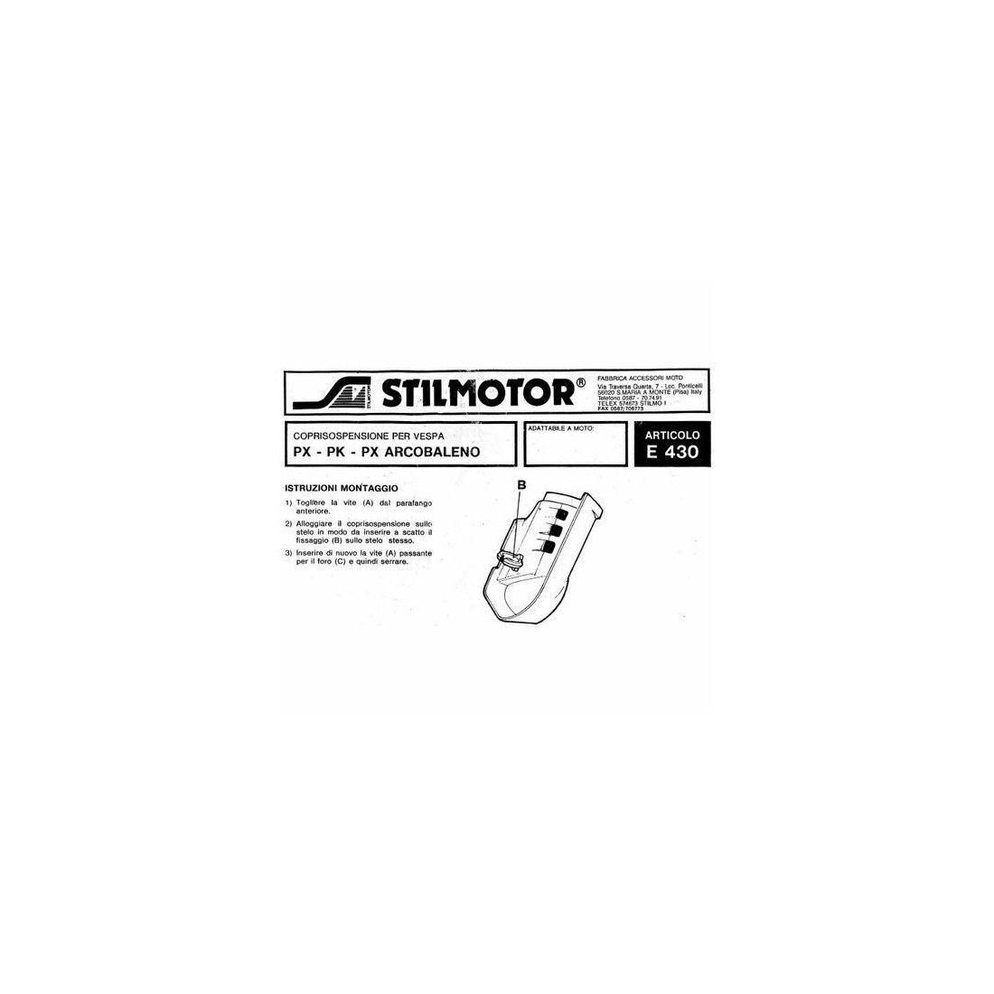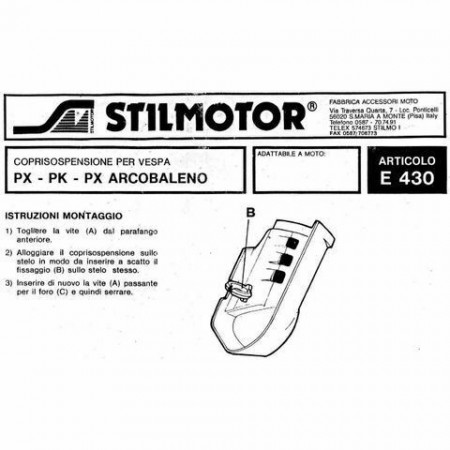 (R.6537) Vendo copri forcella anteriore nuovo per Piaggio Vespa PX - PX Arcobaleno - PK marca Stilmotor di colore bianco , per applicazioni ed esploso vedere foto