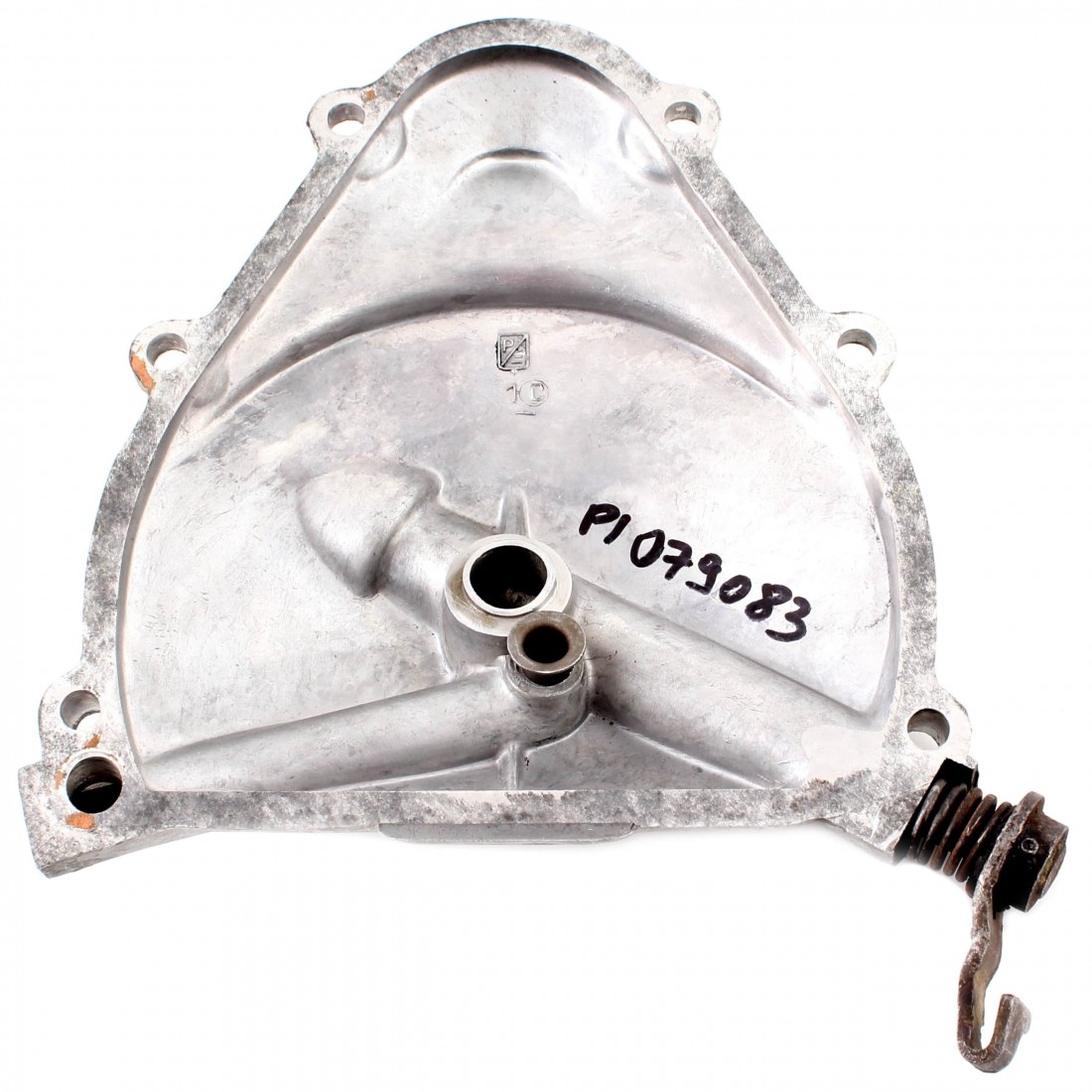(R.4929) Vendo coperchio carterino lato frizione usato per Piaggio Vespa 90 - 50S - 50R dal 1968 con codice Piaggio 079083 originale epoca marchiato Piaggio logo quadrato e completo di leva corsa corta , per misure con applicazioni ed esploso vedere foto