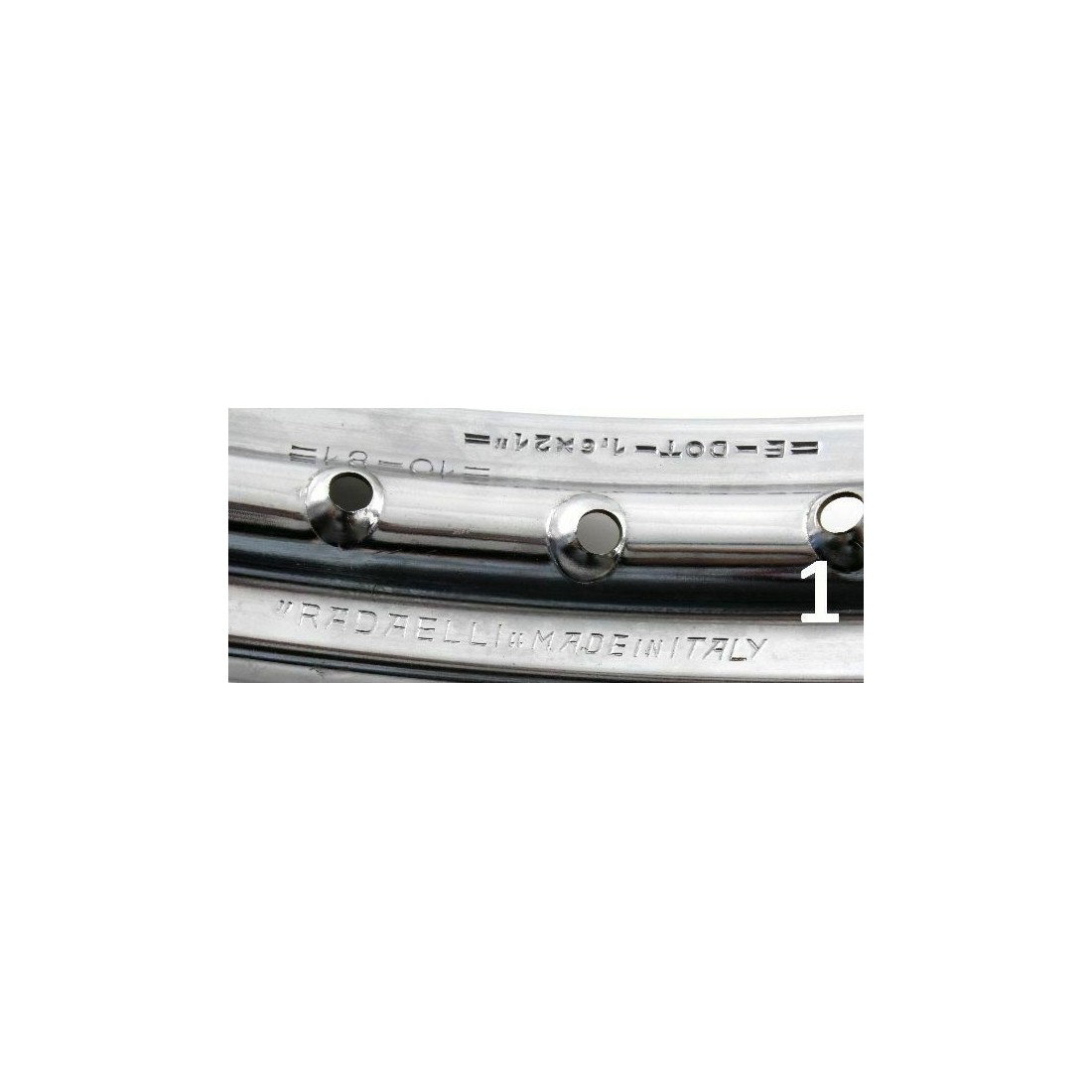 (R.7712) Vendo cerchione in ferro cromato nuovo misura 1.6 x 21 - 1,6x21 36 fori , made in Italy marca Radaelli , marchiato 10,81 / = E, DOT 1,6 x 21 = , con bordo piatto , per misure vedere foto