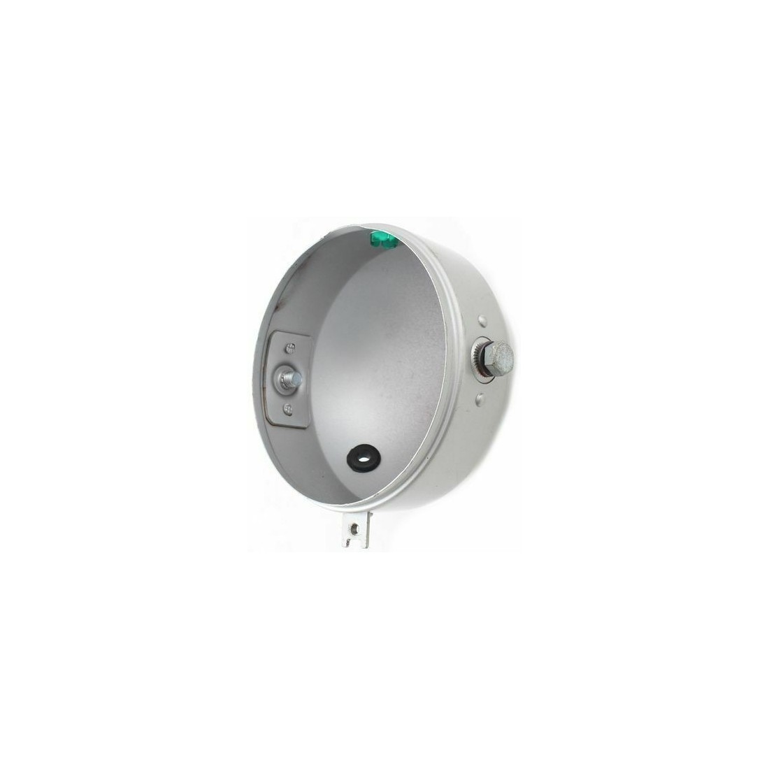 (R.7300) Vendo corpo fanale anteriore nuovo in ferro di colore grigio con leggeri segni di magazzino marca CEV 195 per Aprilia - Malaguti ecc con codice CEVF2005179 o F2005179 , per misure vedere foto