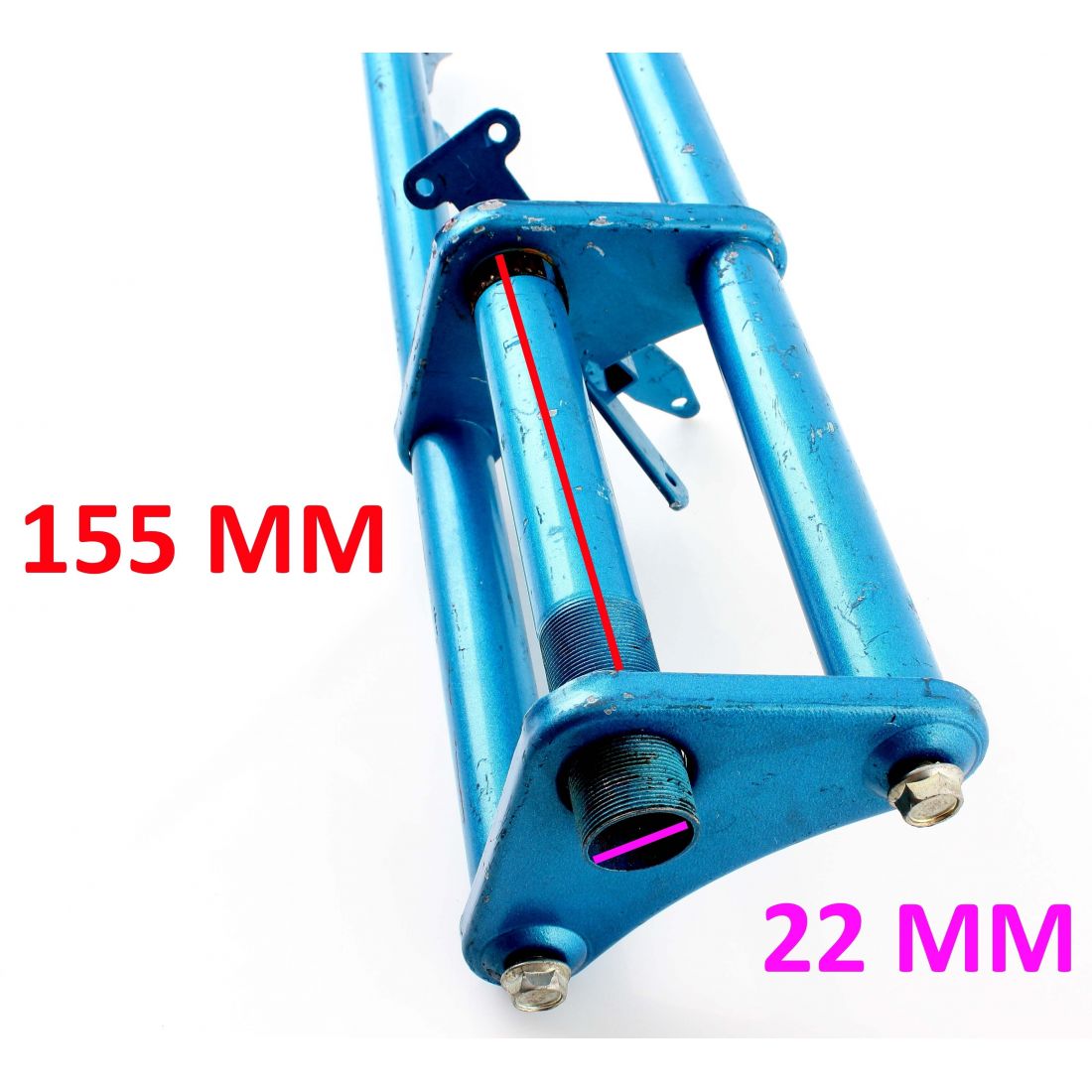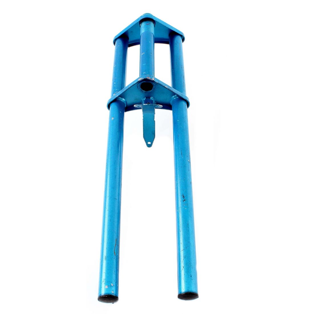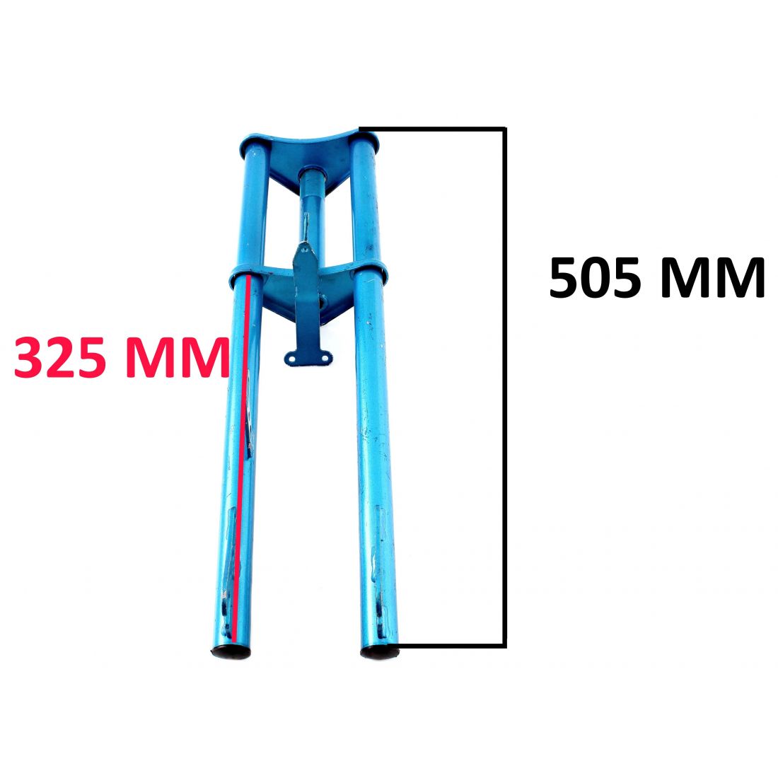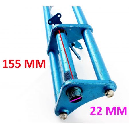 (R.4379) Vendo sospensione anteriore rigida fissa nuova per biciclette cross del 20 vintage di colore azzurro , lunghezza totale 505 mm e misura interasse 50 mm , per misure vedere foto