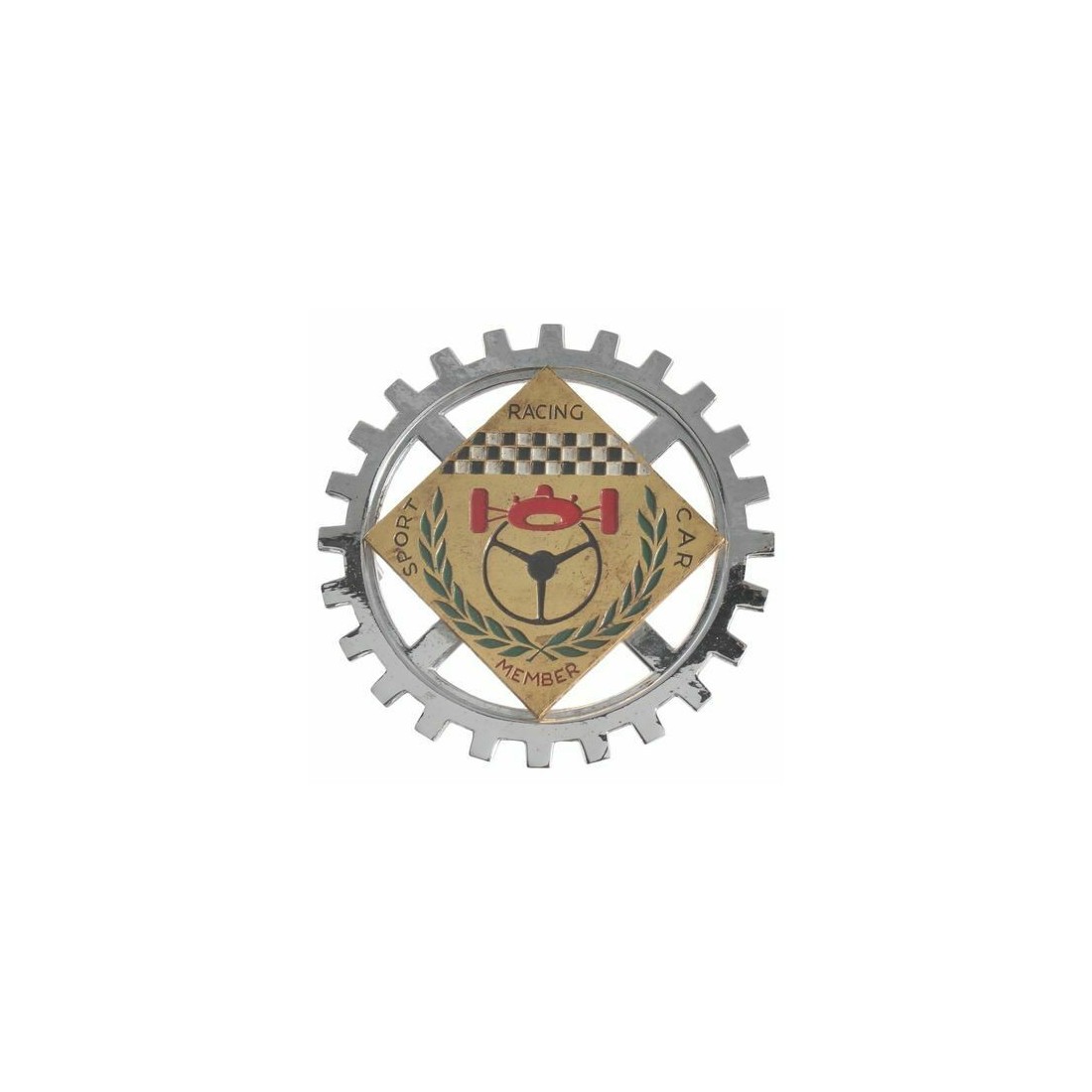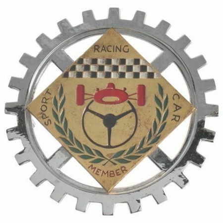 (R.5452) Vendo fregio per auto nuovo stemma Sport Racing Car Member con diametro 91 mm e interasse perni di fissaggio 75 mm , per misure vedere foto