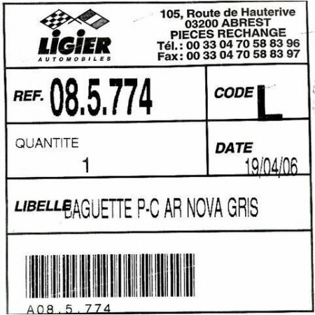 (R.9218) Vendo plastica paraurti Ligier di colore grigio chiaro nuovo con strisci di magazzinaggio per mini auto con codice Ligier 08.5.774 o 085774