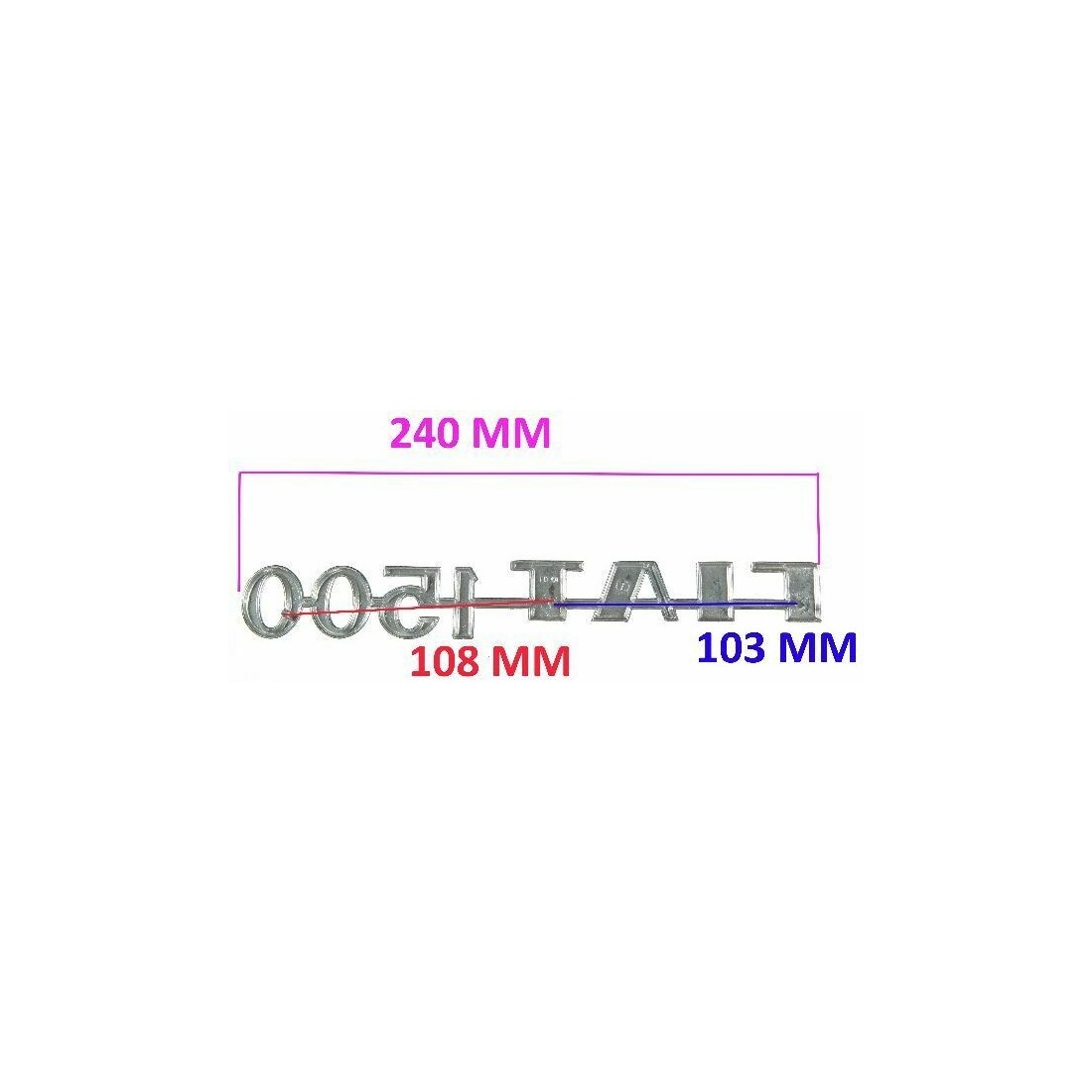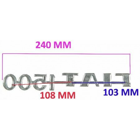 (R.6075) Vendo emblema targhetta nuova per auto Fiat 1500 originale epoca in metallo cromato con interasse fori di fissaggio 108 mm e 103 mm e lunghezza 240 mm , per misure vedere foto