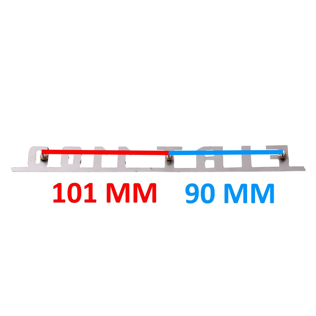 (R.5685) Vendo fregio stemma nuovo per auto Fiat 1100 originale epoca in ferro cromato con interasse fori di fissaggio 101 mm e 90 mm e lunghezza 235 mm , per misure vedere foto