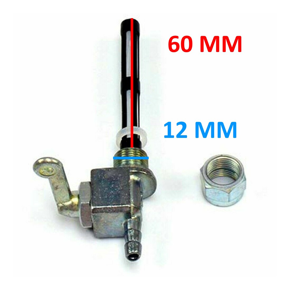 (R.18833) Vendo rubinetto carburante nuovo per motocicli vari vintage tipo Gilera con altezza asta 60 mm e diametro filetto 12 mm , per misure vedere foto