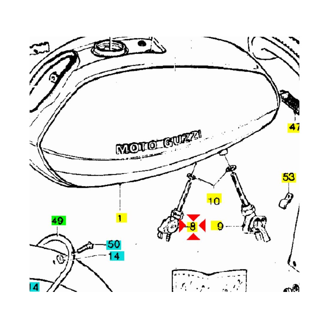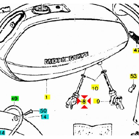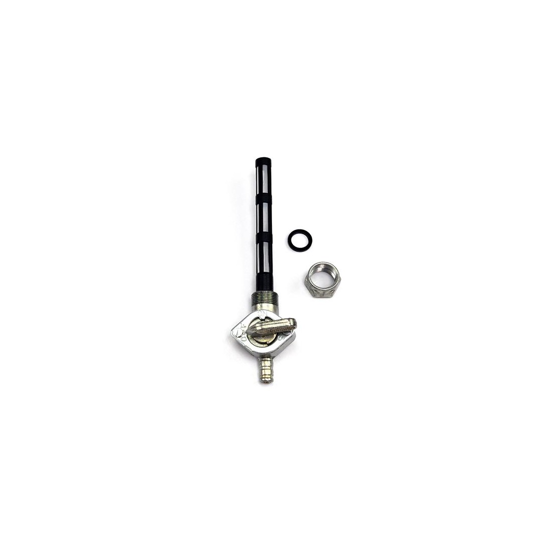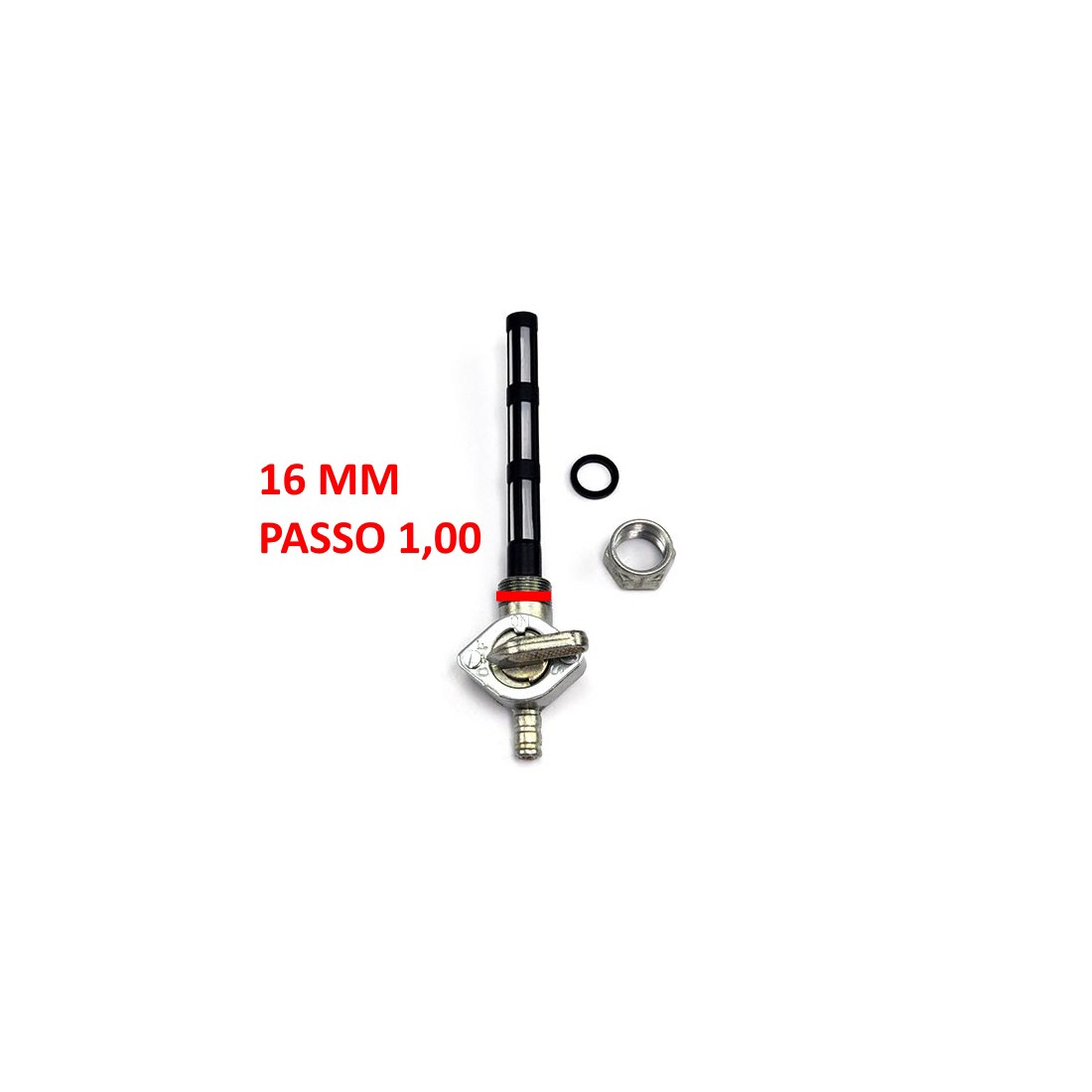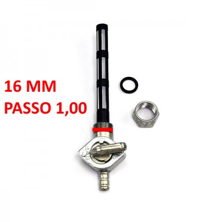 (R.19741) Vendo rubinetto carburante destro con uscita inferiore nuovo per Moto Guzzi V7 Special 750 cc dal 1969 - Le Mans III 850 cc dal 1981 - T3 850 cc dal 1975 - California II 1000 cc dal 1983 - S 1000 cc dal 1989 - SP 1000 cc dal 1979 simile a codice GU17105460 o 17105460 con filetto da diametro 16 mm e passo 1,00 , per misure e applicazioni vedere foto