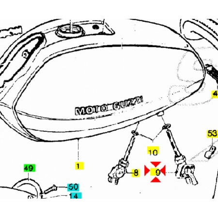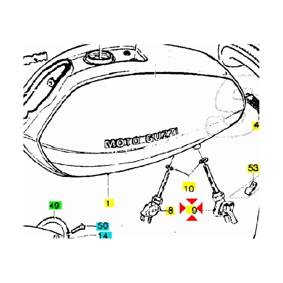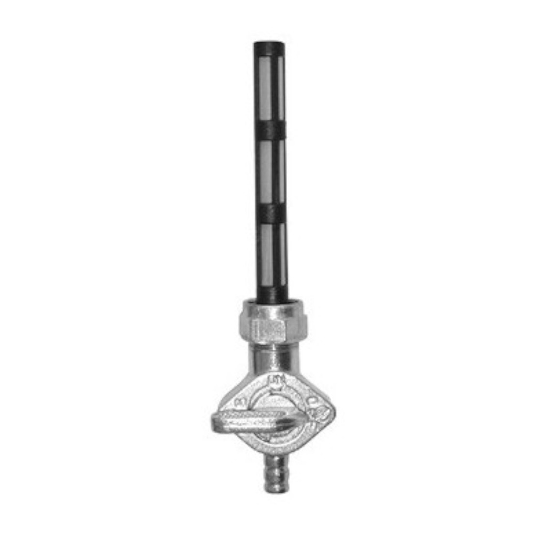 (R.19742) Vendo rubinetto carburante sinistro con uscita inferiore nuovo per Moto Guzzi V7 Special 750 cc dal 1969 - Le Mans III 850 cc dal 1981 - T3 850 cc dal 1975 - California II 1000 cc dal 1983 - S 1000 cc dal 1989 - SP 1000 cc dal 1979 simile a codice GU17105461 o 17105461 con filetto da diametro 16 mm e passo 1,00 , per applicazioni e misure vedere foto