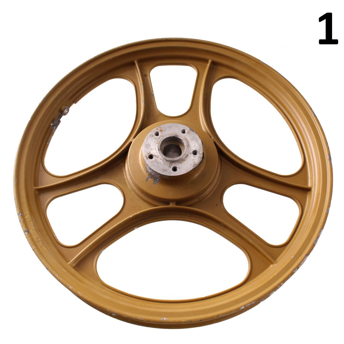 (R.24582) Vendo ruota in lega per Malaguti Fifty Top - HF e CX del 1986 per freno a disco con fissaggio a 5 fori a 3 razze da 16 pollici , disponibili più combinazioni :