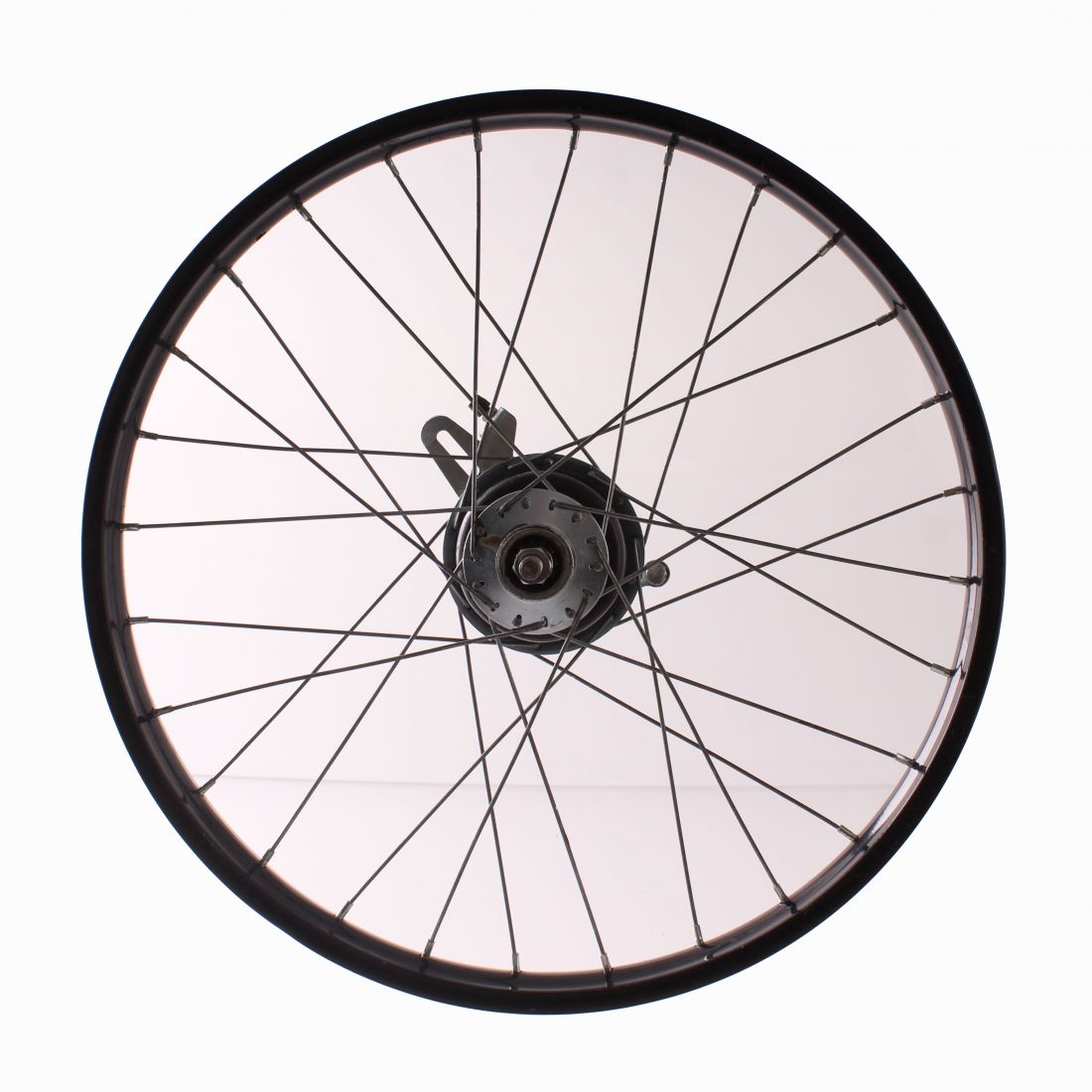 (R.25007) Vendo cerchio ruota anteriore nuovo con segni di magazzinaggio per bici del 20 cross vintage degli anni 1980 - 1990 con cerchio nero e freno a tamburo , con larghezza del cerchio da 34 mm , per misure vedere foto
