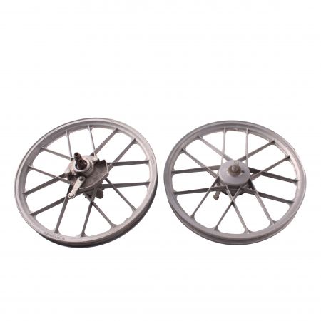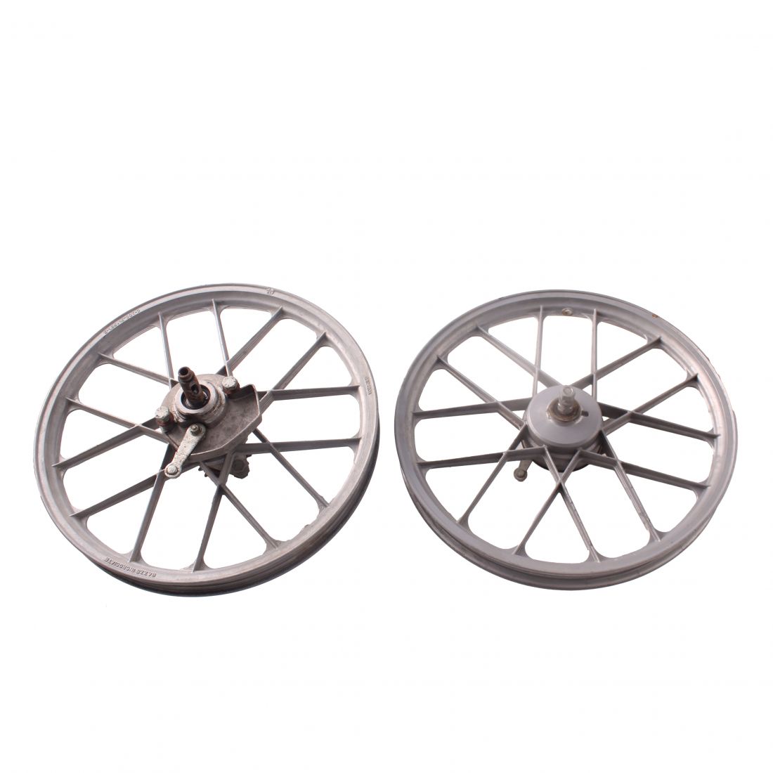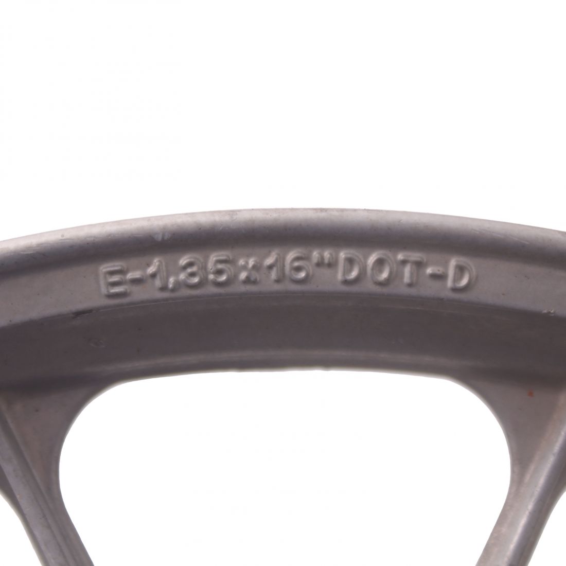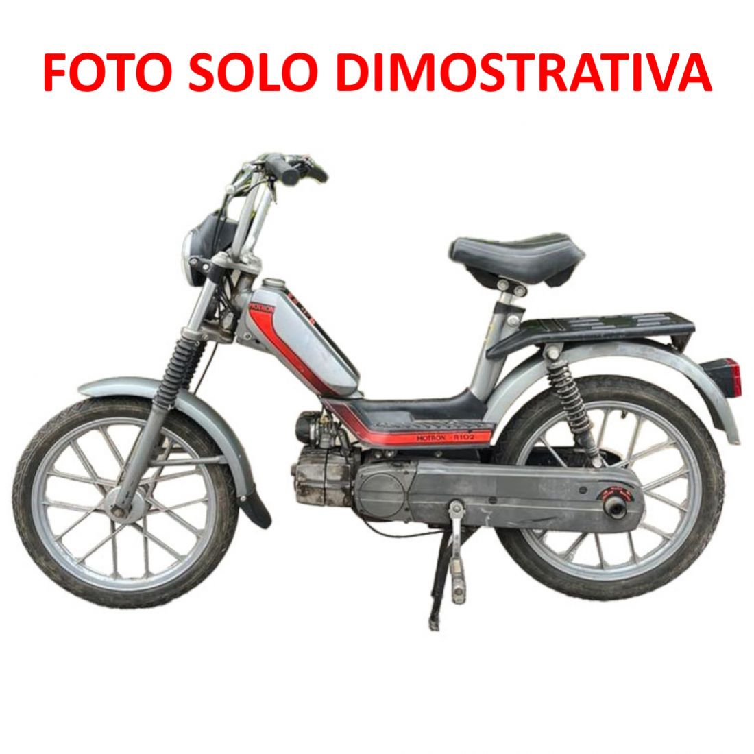 (R.22972) Vendo coppia di cerchi anteriore e posteriore in lega da 16 pollici usata sana per Motron R 102 marca Grimeca marchiate E - 1,35 x 16" DOT - D , foto del mezzo solo a scopo illustrativo