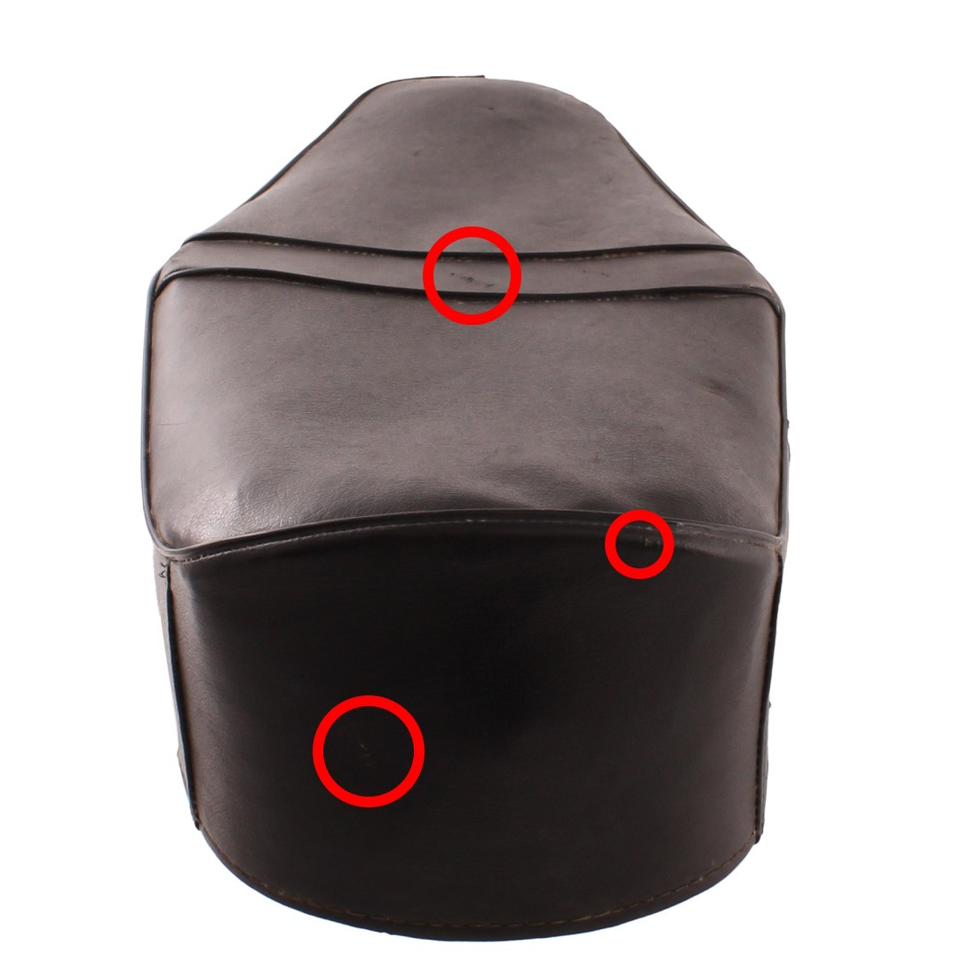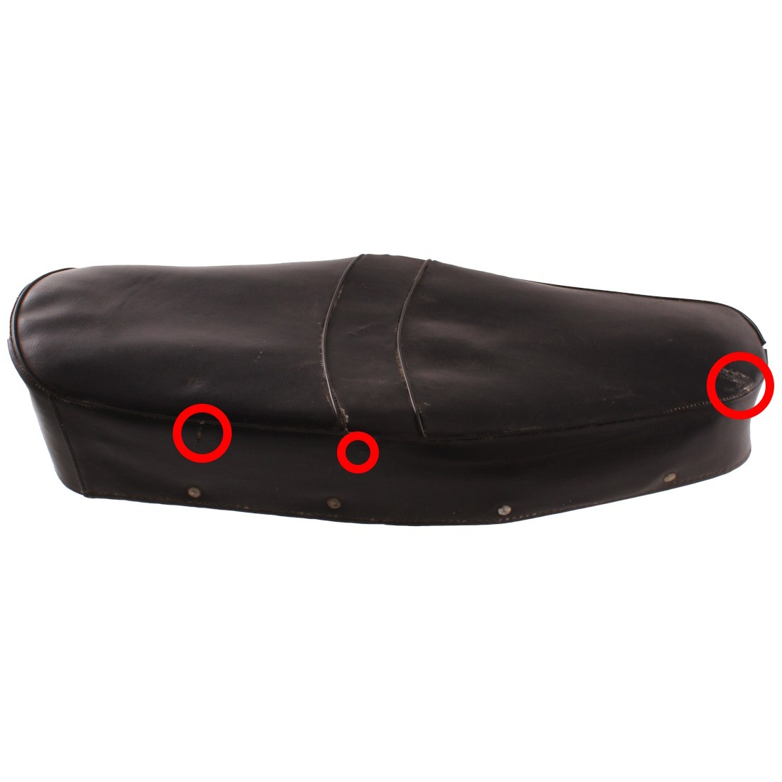 (R.21406) Vendo sedile biposto usato per motocicli vintage con lunghezza 590 mm e larghezza nel mezzo 220 mm con piccoli tagli come da foto , non conosciamo modello veicolo , per misure vedere foto