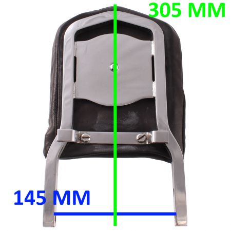 (R.23740) Vendo schienale imbottito usato per moto custom varie con altezza totale 305 mm , distanza tra le staffe di fissaggio 145 mm , interasse fori di fissaggio 31,5 mm con diametro tubo quadro da 14,5 , per misure vedere foto