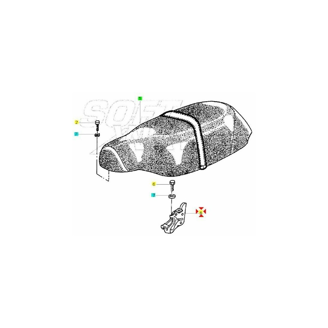 (R.4571) Vendo dispositivo apertura e chiusura sella usato per Piaggio Typhoon , Skipper , Sfera , NRG , NTT , SKR , Quartz 50e 125 cc dal 1991 con codice Piaggio 268300 con telai C291000 , C48100 , C320001 , C210 , C220 , C320 , SP81T , C04000 , C0100 , CSM1T , CSV1T , SAL1T , NSP1T , SM51T , per applicazioni ed esploso vedere foto