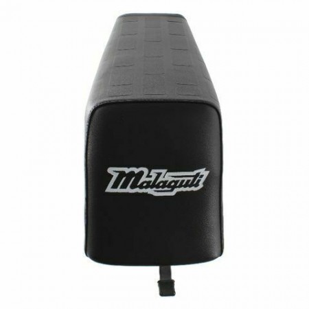 (R.12592) Vendo sedile lungo nuovo per Malaguti New Dribbling 50 cc dal 1988 originale epoca con codice 10500103 in sky di colore nero con scritta posteriore Malaguti in rilievo con bordo bianco e laterali destra e sinistra New Dribbling nere , per applicazioni vedere foto