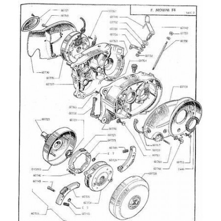 (R.8856) Vendo carterino motore lato frizione in alluminio nuovo per Franco Morini F4 , marchiato F4 , M3 con codice R12001 o R 1-2001 , per esploso vedere foto