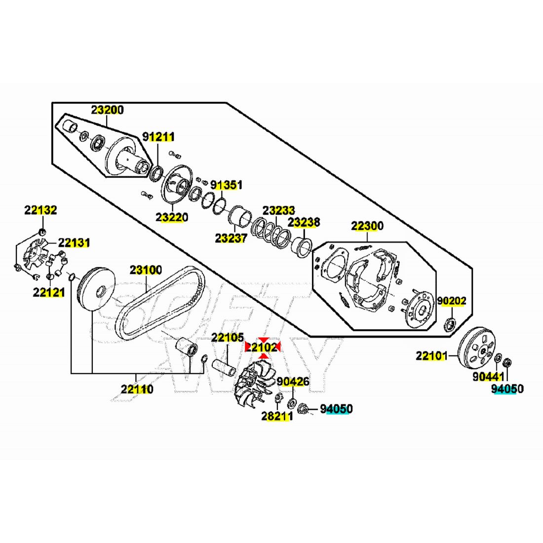 (R.21985) Vendo puleggia primaria fissa nuova per Kymco Agility 125 , 150 e 200 - Like 125 e 200 - Movie 125 e 150 - People 125 , 150 e 200 - Super 8 125 - Vivio 125 e 250 simile a codice Kymco 00126115 , per applicazioni e spaccato vedere foto