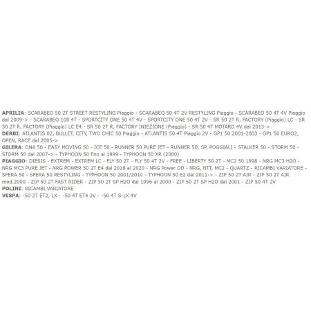 (R.23697) Vendo ventola della semipuleggia nuova per APRILIA SCARABEO 50 2T STREET RESTYLING - SCARABEO 50 4T 2V RESTYLING - SCARABEO 50 4T 4V Piaggio dal 2009 - SCARABEO 100 4T - SPORTCITY ONE 50 4T 4V - SPORTCITY ONE 50 4T 2V - SR 50 2T R, FACTORY LC - SR 50 2T R, FACTORY LC E4 - SR 50 2T R, FACTORY INIEZIONE - SR 50 4T MOTARD 4V dal 2013 , DERBI ATLANTIS 02, BULLET, CITY, TWO CHIC 50 - ATLANTIS 50 4T 2V - GP1 50 2001-2003 - GP1 50 EURO2, OPEN, RACE dal 2005 , Gilera DNA 50 - EASY MOVING 50 - ICE 50 - RUNNER 50 PURE JET - RUNNER 50, SP, POGGIALI - STALKER 50 - STORM 50 - STORM 50 dal 2007 - TYPHOON 50 fino al 1999 - TYPHOON 50 XR , Piaggio DIESIS - EXTREM - EXTREM LC - FLY 50 2T - FLY 50 4T 2V - FREE - LIBERTY 50 2T - MC2 50 1998 - NRG MC3 H2O - NRG MC3 PURE JET - NRG POWER 50 2T E4 dal 2018 al 2020 - NRG Power DD - NRG, NTT, MC2 - QUARTZ - RICAMBI VARIATORE - SFERA 50 - SFERA 50 RESTYLING - TYPHOON 50 2001/2010 - TYPHOON 50 E2 dal 2011 - ZIP 50 2T AIR - ZIP 50 2T AIR - ZIP 50 2T FAST RIDER - ZIP 50 2T SP H2O dal 1996 - ZIP 50 2T SP H2O dal 2001 - ZIP 50 4T 2V - Vespa 50 ET2 - Vespa 50 ET4 - Vespa 50 LX - Vespa 50 S originale Polini con codice 246.030 , per applicazioni vedere foto