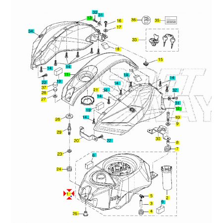 (R.9213) Vendo serbatoio benzina nuovo in plastica per Yamaha YZF R 125 cc dal 2008 con codice Yamaha 5D7F41104200, per applicazioni e spaccato vedere foto