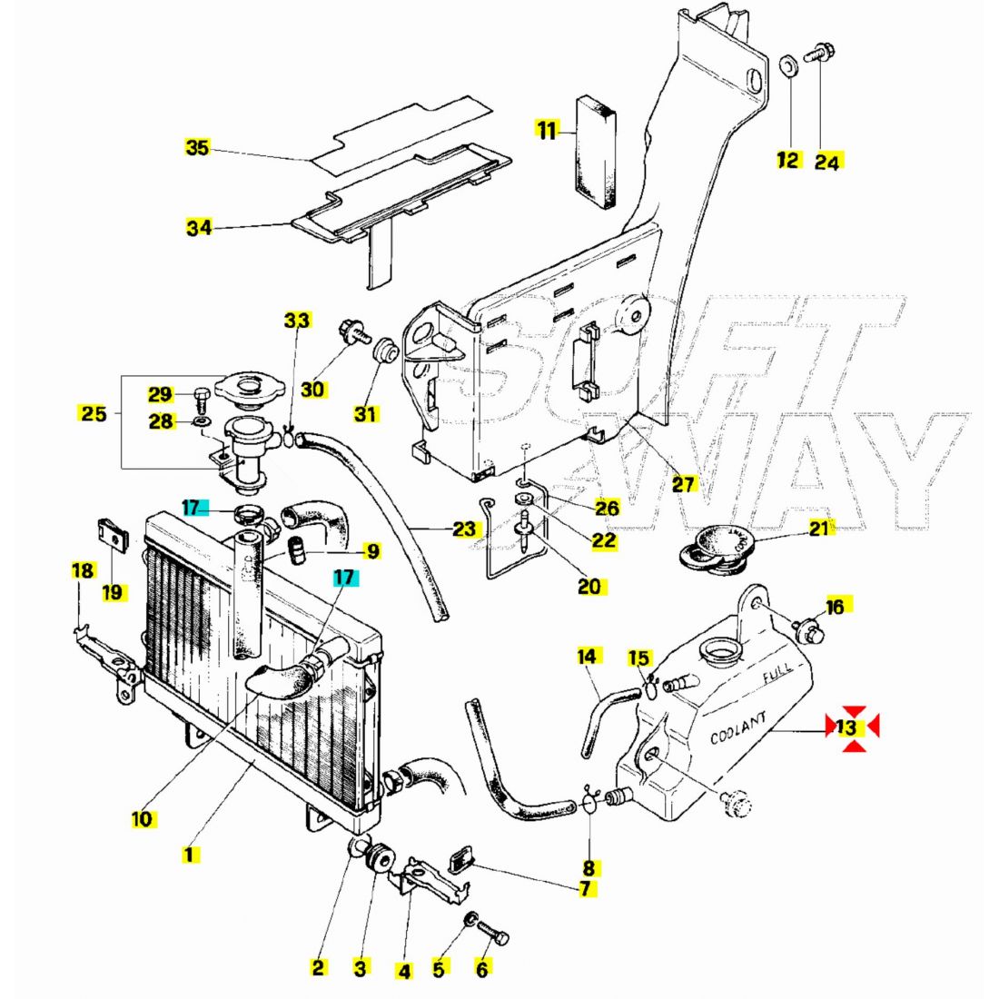 (R. 25081) Vendo vaso espansione acqua usato per Yamaha TDR 125 R  - TDR 125  - DT 125 R con codice Yamaha 3NCF18710000 , per applicazioni e spaccato vedere foto