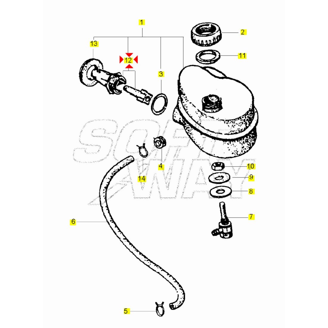 (R.22351) Vendo bicchierino controllo livello del serbatoio olio miscelatore nuovo per Piaggio Vespa PX 125 e 150 - Vespa PXE Arcobaleno 125 - Vespa P 200 E - Vespa PX E 150 simile a codice Piaggio 623140 , per applicazioni e spaccato vedere foto