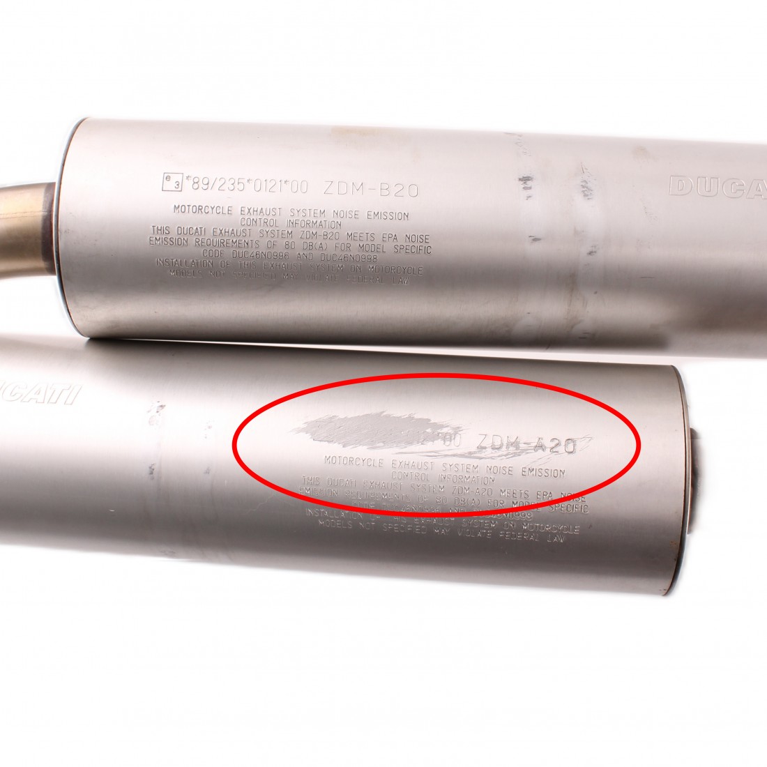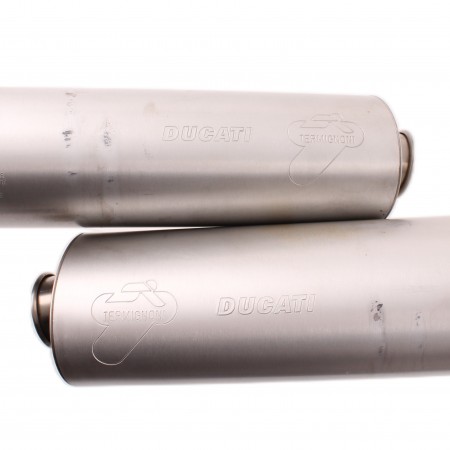 (R.17538) Vendo coppia silenziatori usati sinistro e destro per Ducati Superbike 998 cc dal 2002 al 2004 originali Termignoni con codice sinistro 57410691A e destro 57310691A marchiati ZDM-A20 ZDM-B20 , silenziatore destro strisciato come da foto , il prezzo si intende per la coppia , per applicazioni vedere foto
