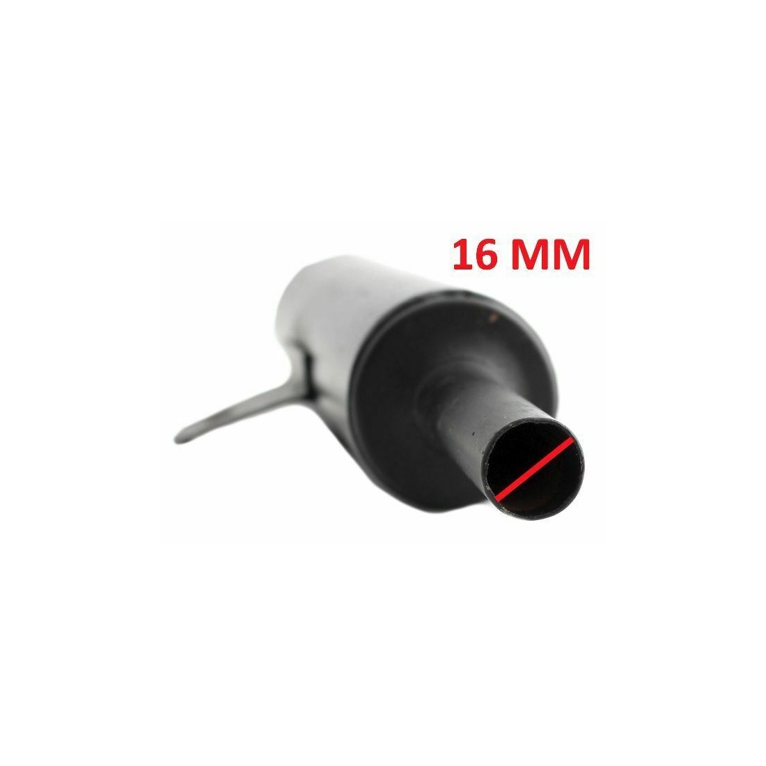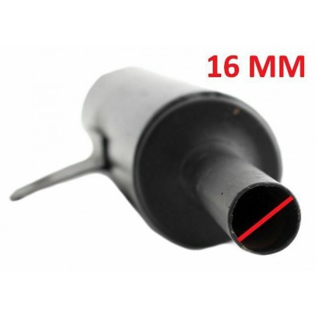 (R.9129) Vendo terminale di scarico modello vintage nuovo per Piaggio Ciao e ciclomotori vari epoca in ferro di colore nero con diametro imbocco da 16 mm , lunghezza corpo 200 mm e diametro corpo 48 mm , per misure vedere foto