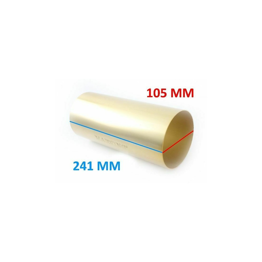 (R.8112) Vendo fodero a cilindro esterno nuovo con leggeri segni di magazzino in alluminio colore oro per silenziatore moto marchiato Marving con diametro 105 mm. , per misure vedere foto