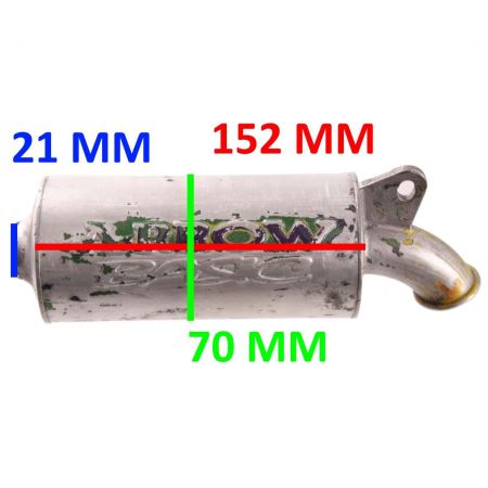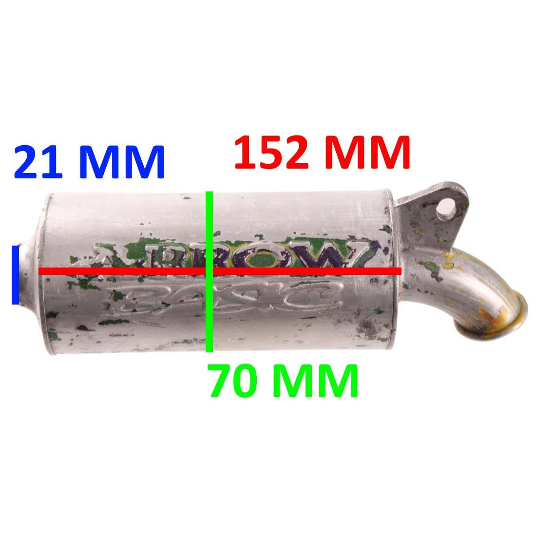 (R.13734) Vendo silenziatore usato per scooter Benelli 491 marchiato Arrow con lunghezza 152 mm e diametro 70 mm , con diametro imbocco 21 mm con carcassa strisciata , per misure vedere foto