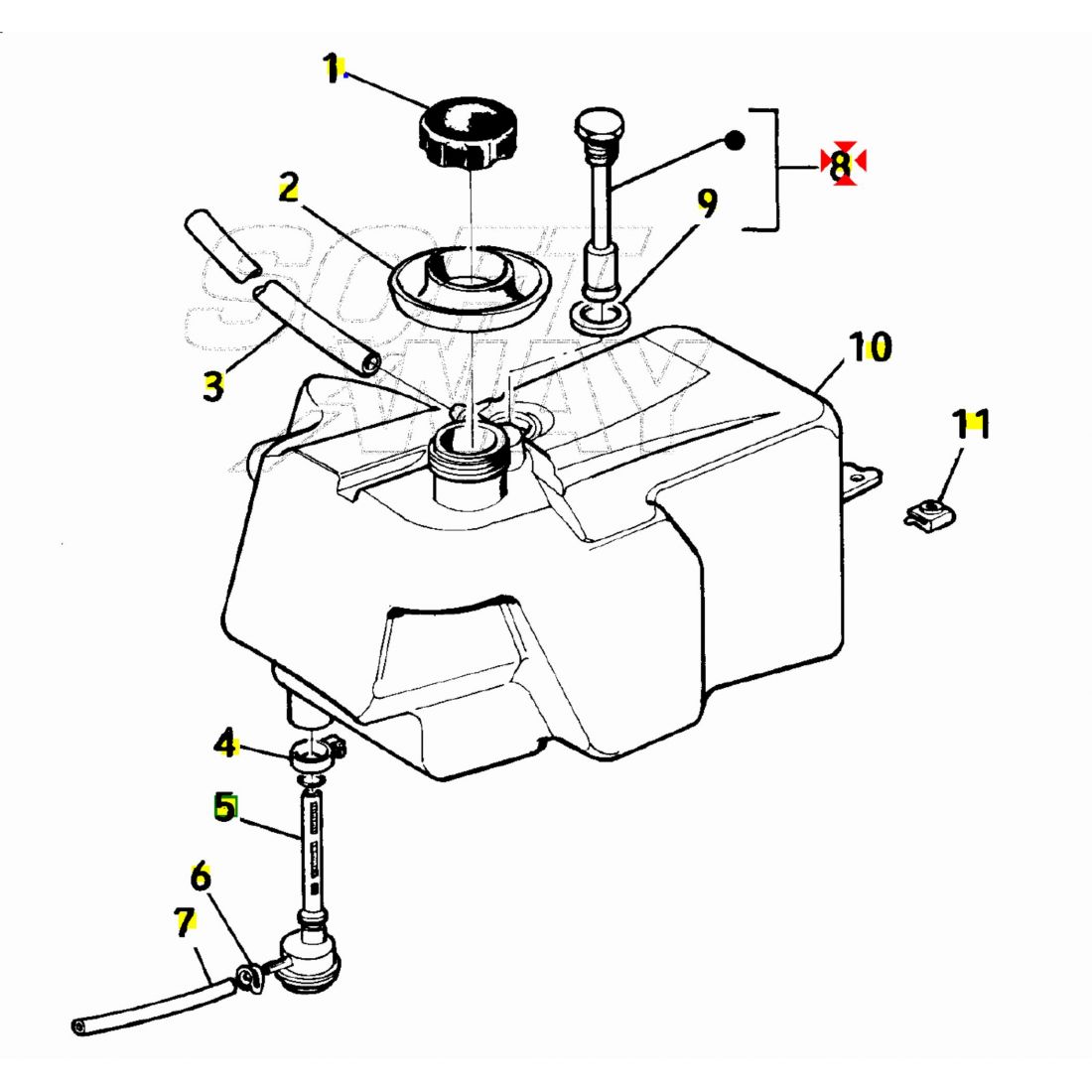 (R.22986) Vendo indicatore di riserva carburante usato originale Piaggio con codice 259008 per Piaggio Free Delivery FL 50 dal 1992 , con lunghezza corsa galleggiante di 71,5 mm e lunghezza totale di 100 mm , per misure con applicazioni e spaccato vedere foto