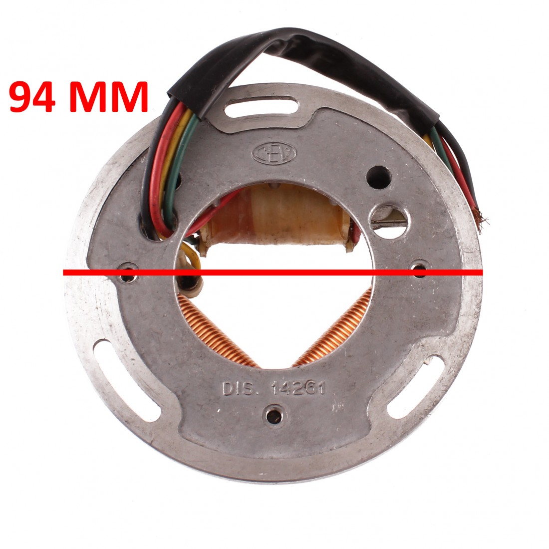 (R.18797) Vendo statore generatore usato per ciclomotori vari vintage marchiato CEV 14261 con diametro 94 mm , per misure vedere foto