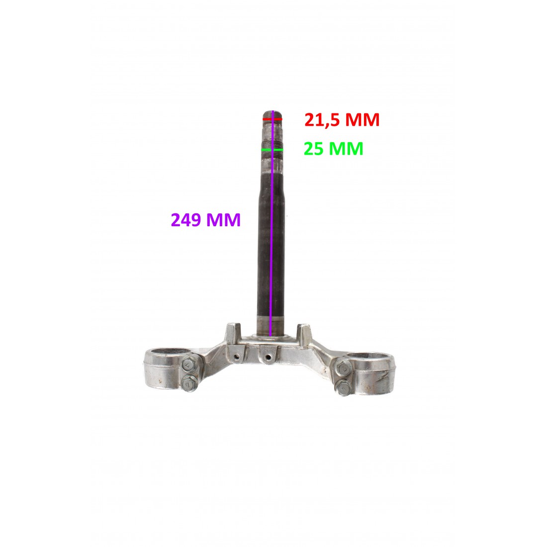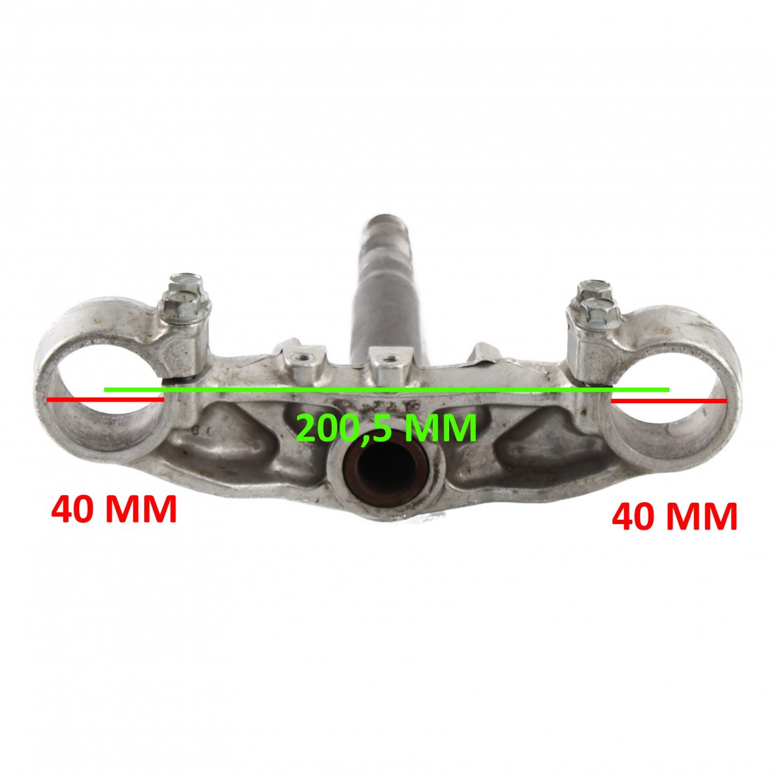 (R.15334) Vendo staffa cristo inferiore forcella usata per Yamaha FZR 1000 dal 1989 fino al 1990 con codice 3GM233400000 con interasse fori di 200,5 mm e diametro fori steli 41,5 mm con altezza canotto 249 mm e diametro filettatura 21,5 mm e 25 mm , per misure e applicazioni vedere foto
