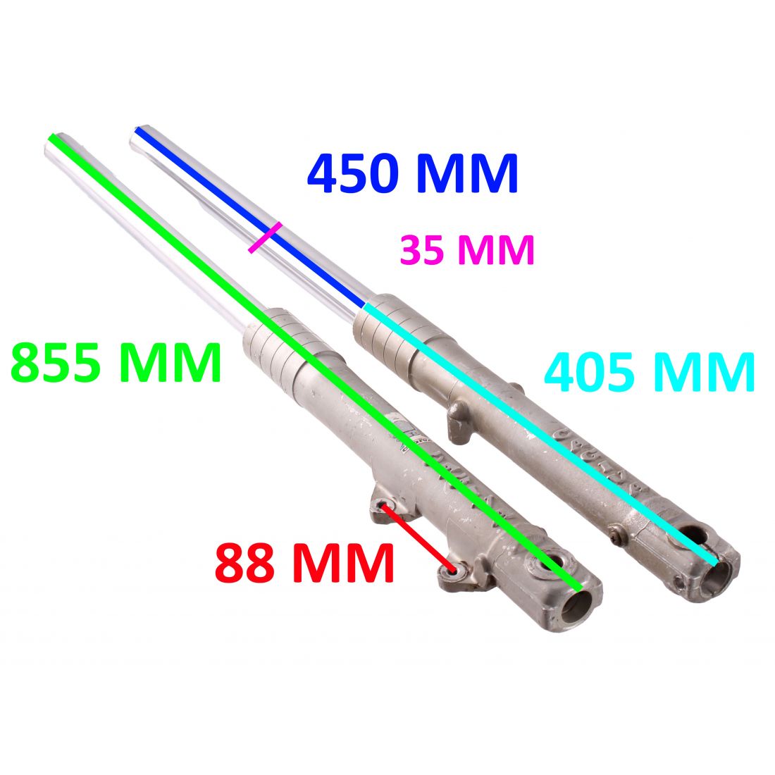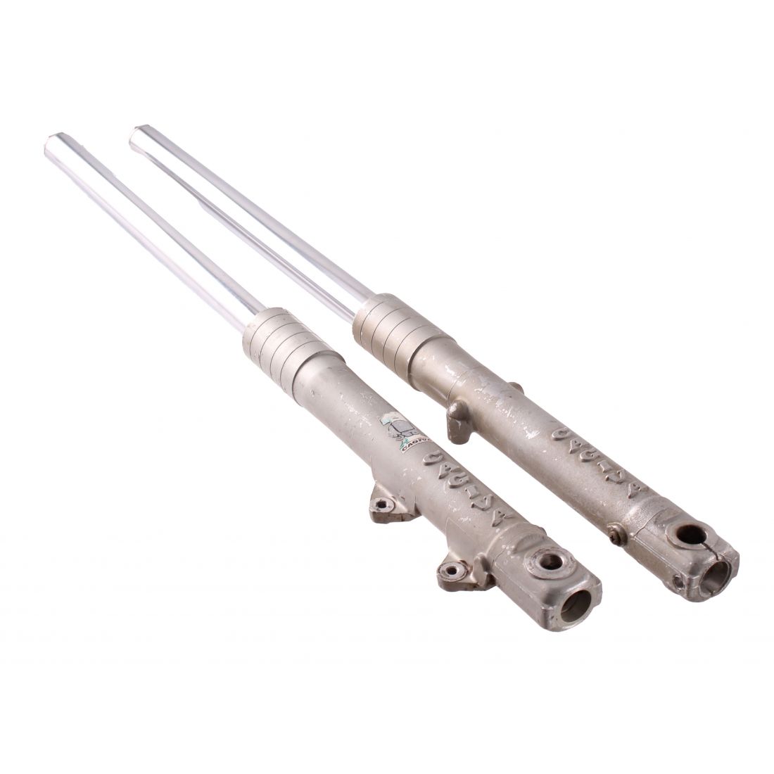 (R. 24762) Vendo coppia steli forcella usata sana competa di foderi forcella con diametro steli da 35 mm. per Cagiva Aletta Rossa 125 , con interassi fissaggio pinza freni da 88 mm. , per misure vedere foto