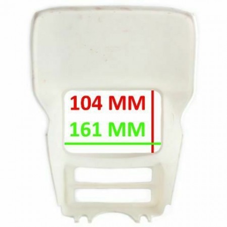 (R.8409) Vendo mascherina portafanale in plastica nuova con tabella portanumero anteriore marca Cemoto di colore bianco per moto varie enduro epoca con fanali rettangolari e foro faro in altezza 104 mm e lunghezza 161 mm. , per misure vedere foto