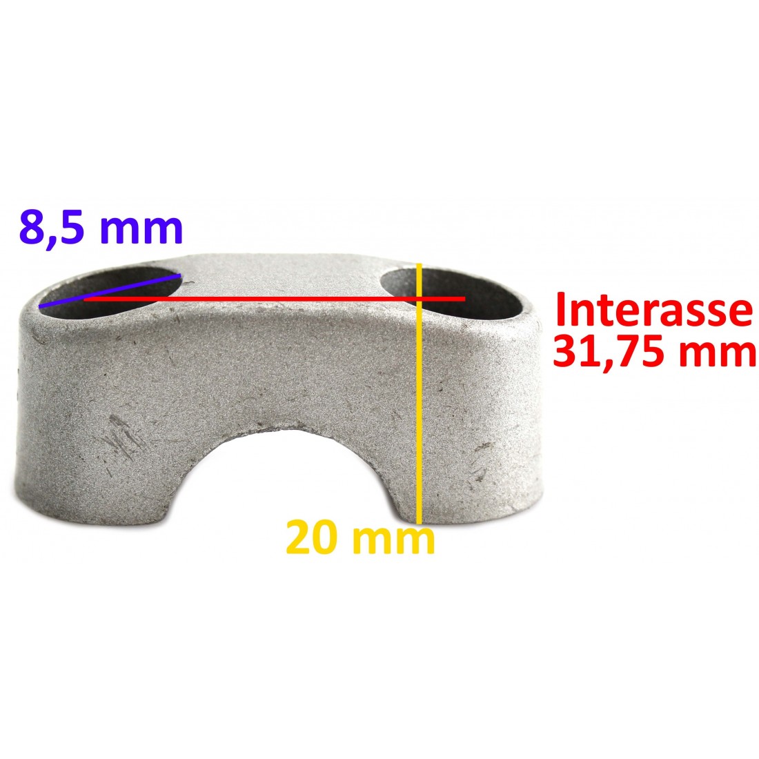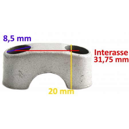(R.8994) Vendo coppia supporti manubrio usati per moto Cagiva varie , coppia con interasse 31,75 mm e altezza 20 mm e fori di 8,5 mm , il prezzo si intende alla singola coppia , per misure vedere foto