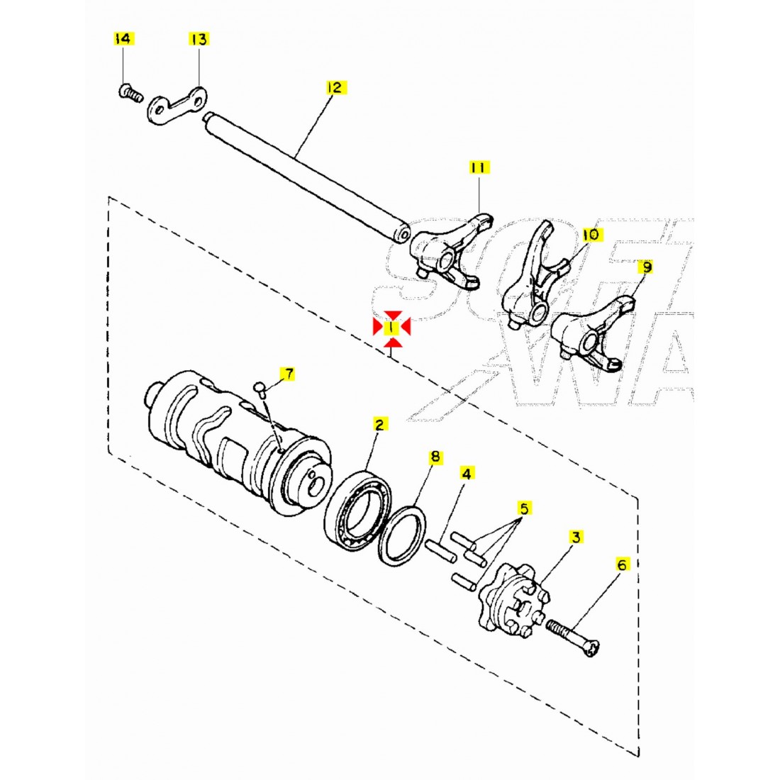 (R.21572) Vendo tamburo desmodromico usato per Yamaha XV Virago 750 e 1100 cc - XV SE Virago 1000 cc dal 1992 con codice Yamaha 4X7185400100 , per applicazioni e spaccato vedere foto