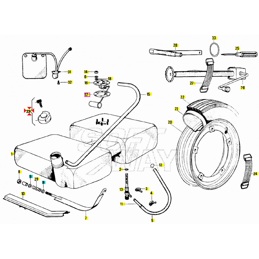 (R.15713) Vendo tappo serbatoio nuovo per Piaggio Ape TM P602 - P703 FL2 - P703V Diesel 220 - 420 cc dal 1982 completo con due chiavi , per applicazioni ed esploso vedere foto