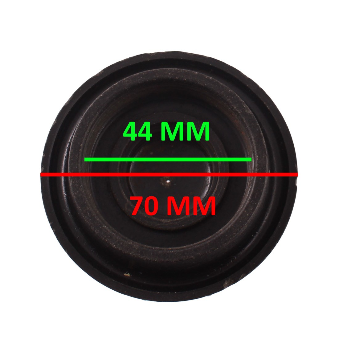(R.19991) Vendo tappo serbatoio carburante usato in bachelite per moto Benelli vintage di cui non conosciamo li modello di colore nero con diametro interno filetto 44 mm e diametro esterno del tappo da 70 mm , per misure vedere foto