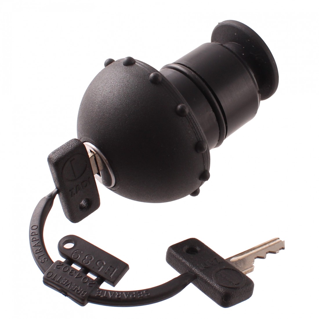 (R.20922) Vendo tappo del serbatoio carburante nuovo in plastica con serratura antifurto con doppia chiave per Piaggio Bravo marca Zadi di colore nero