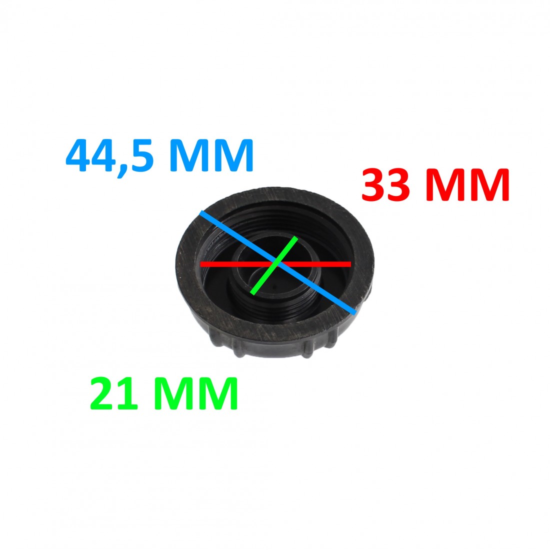 (R.14425) Vendo tappo serbatoio carburante a vite nuovo per moto e ciclomotori vari epoca tipo Garelli - Guzzi - Morini - Parilla di colore nero con diametro interno filetto 33 mm e diametro esterno 44,5 mm con diametro esterno filetto valvola 21 mm , senza guarnizione interna , per misure vedere foto